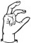 На ћирилици написано ЛУНА ЗЕЧЕВИЋ састоји се из 11 слова [?]. Исписано ћириличном једноручном азбуком за глувонеме: